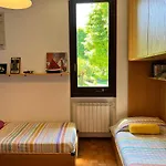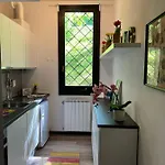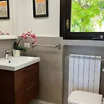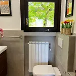 Værelserne har udsigt mod haven. Bnbook Casa Luccio Vistalago Ispra ferielejlighed består af 3 soveværelser. Et badeværelse består af et bidet, separat toilet og en bruser.